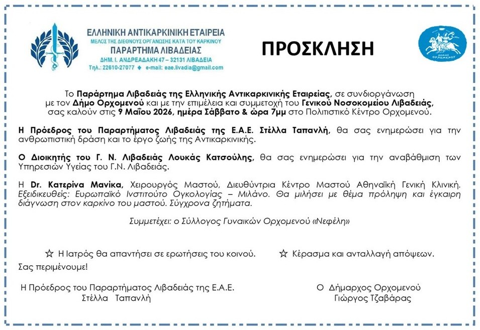 Ενημερώνουμε τους δημότες της Δ.Κ. Ορχομενού ότι, την Παρασκευή...